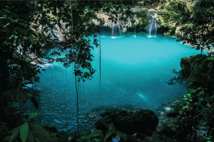 Tek in di sounds. Hold a moment under di trees at Blue Hole Mineral Spring.